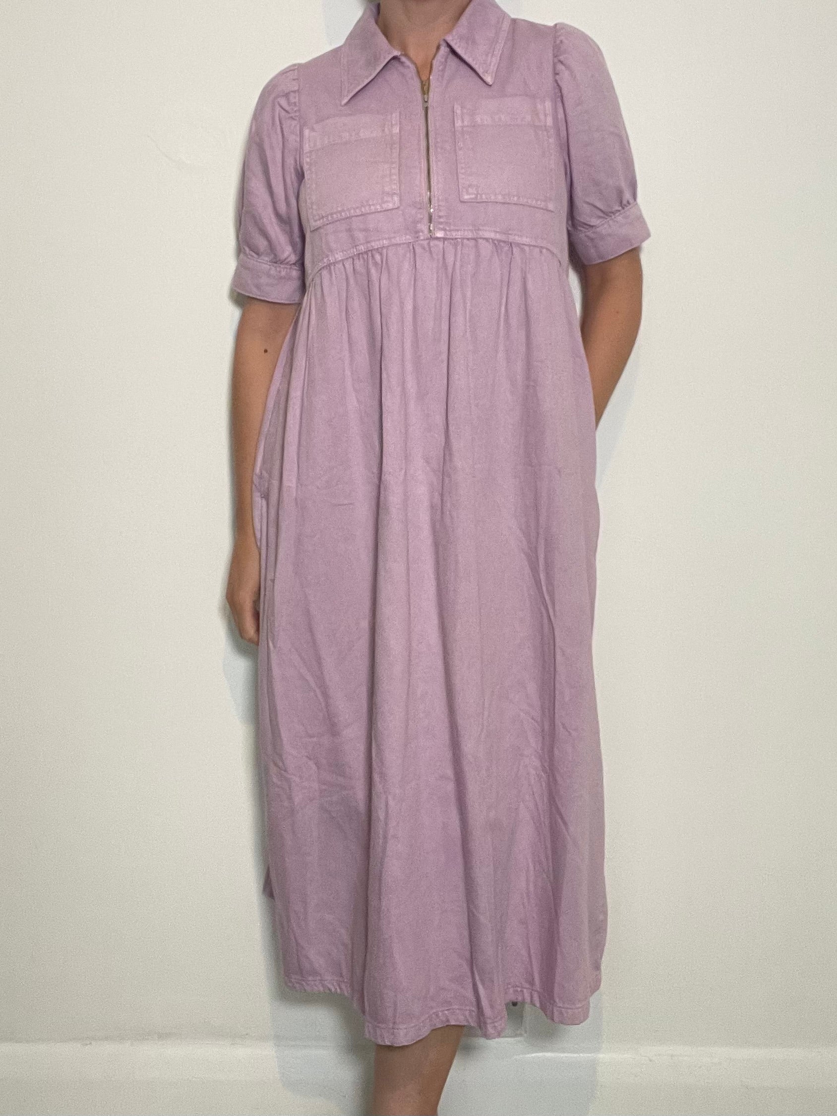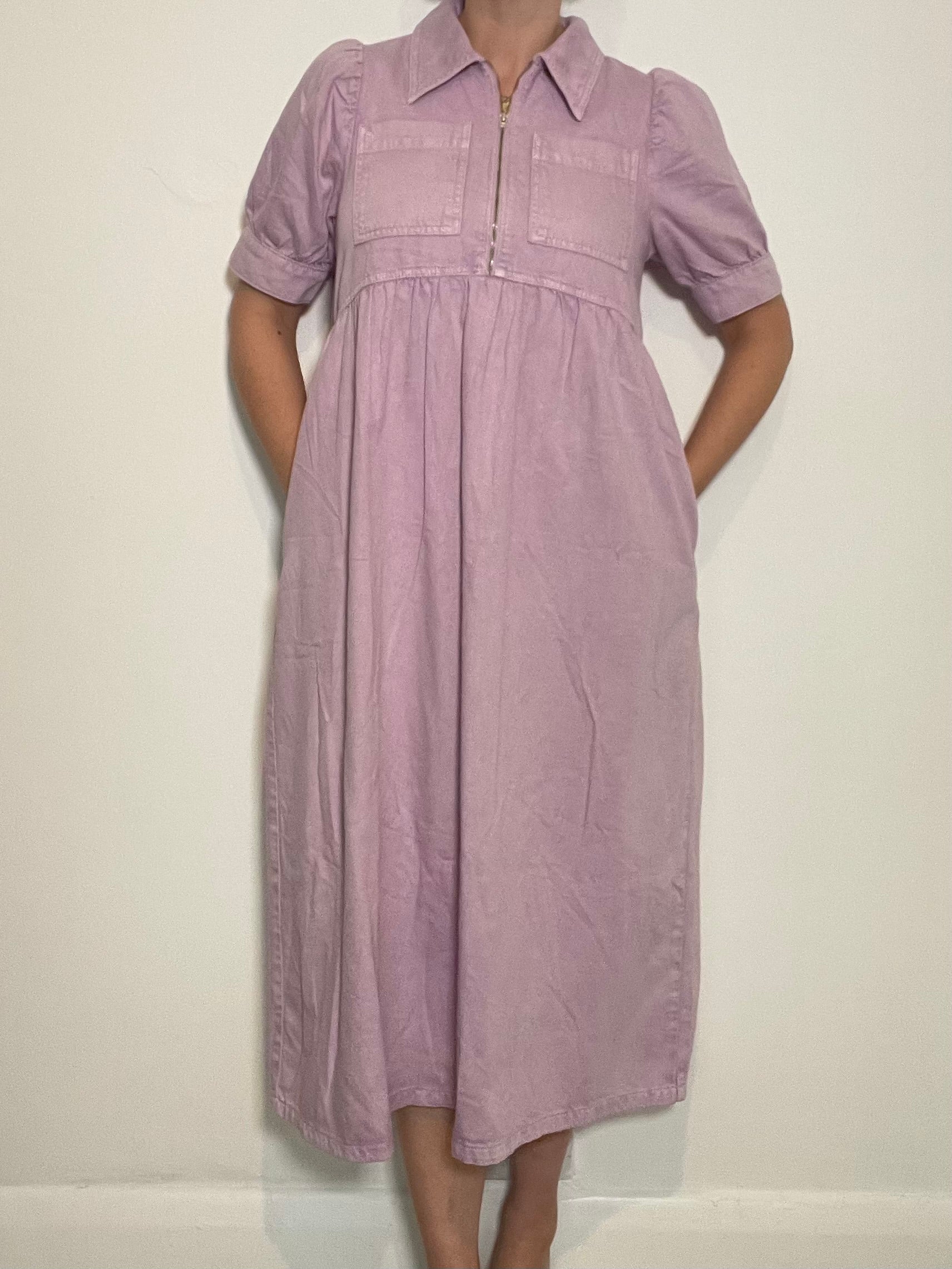Gabriella lilac denim dress short sleeve style