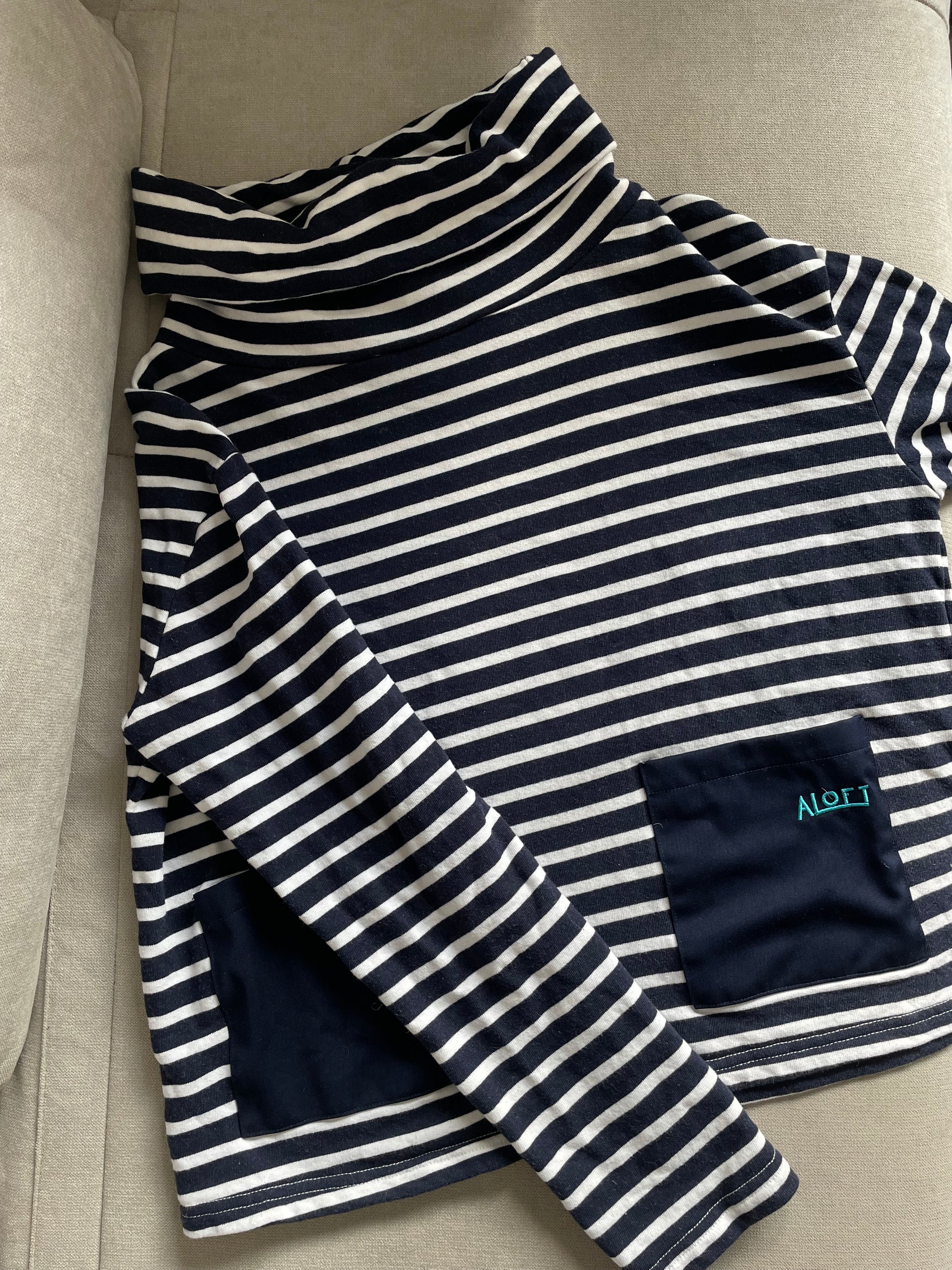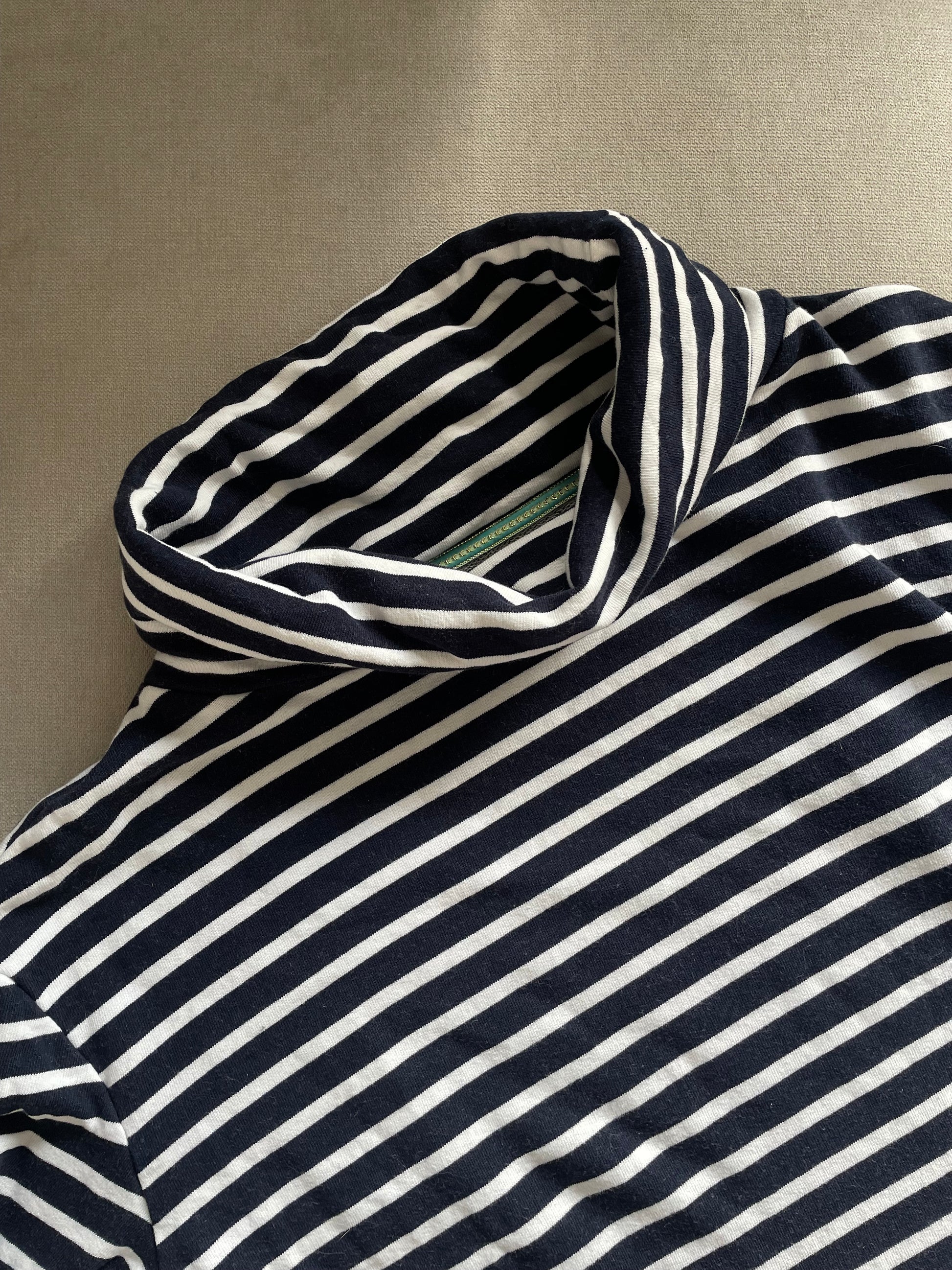 Issey Cowl Neck Stripe Sweat in navy and white