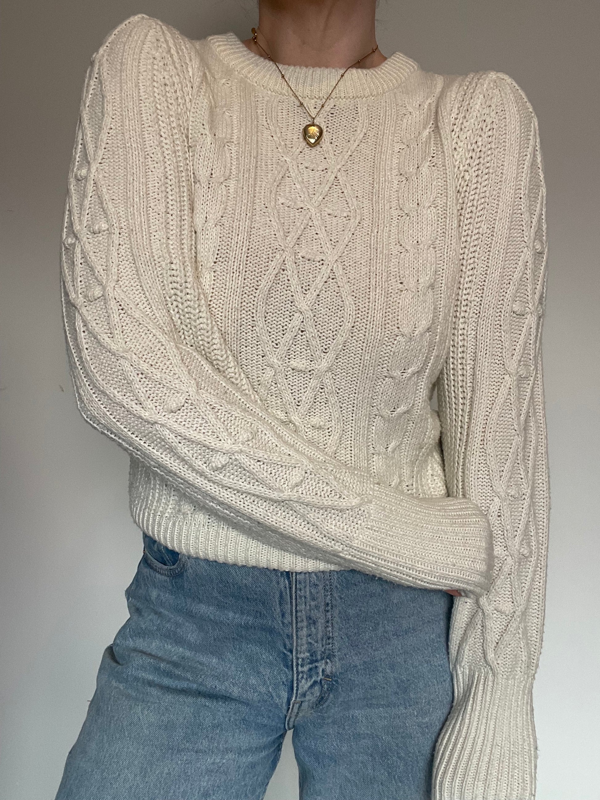 This cosy cable knit jumper is decorated with pom poms for a fashionable twist. Comfy regular fit with a crew neck. Finished with ribbed trims for extra snugness.