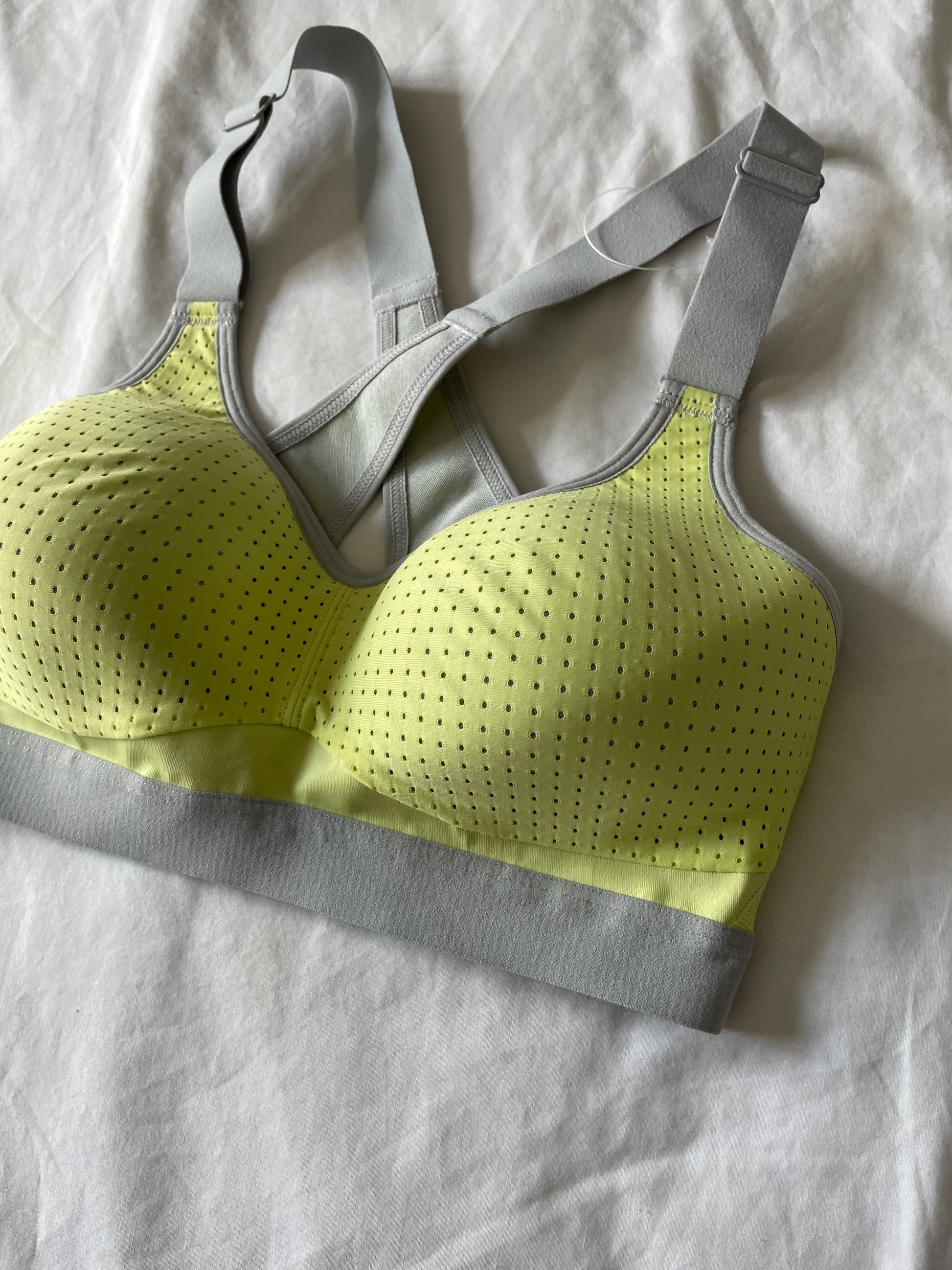 Yellow and grey sports bra