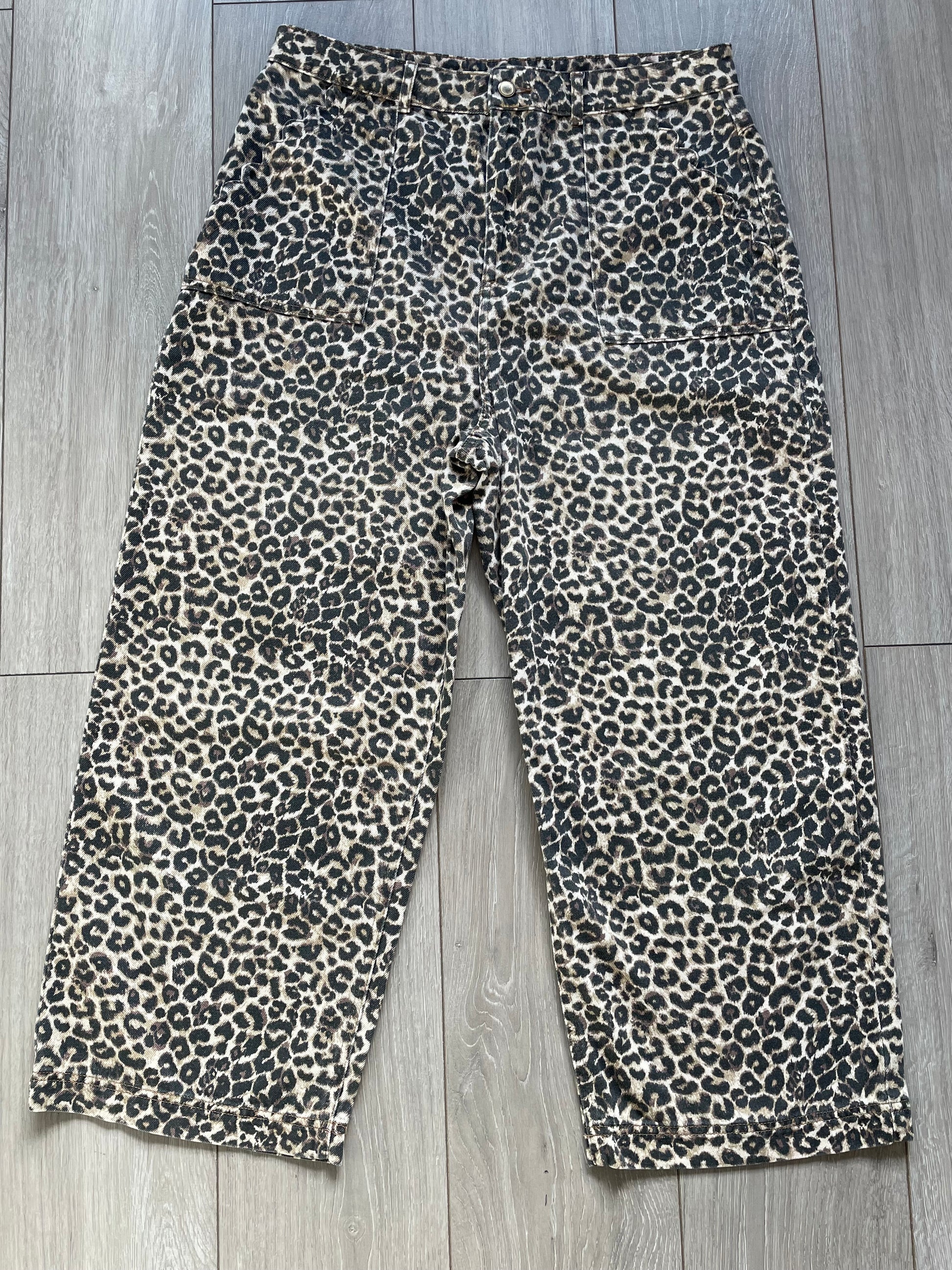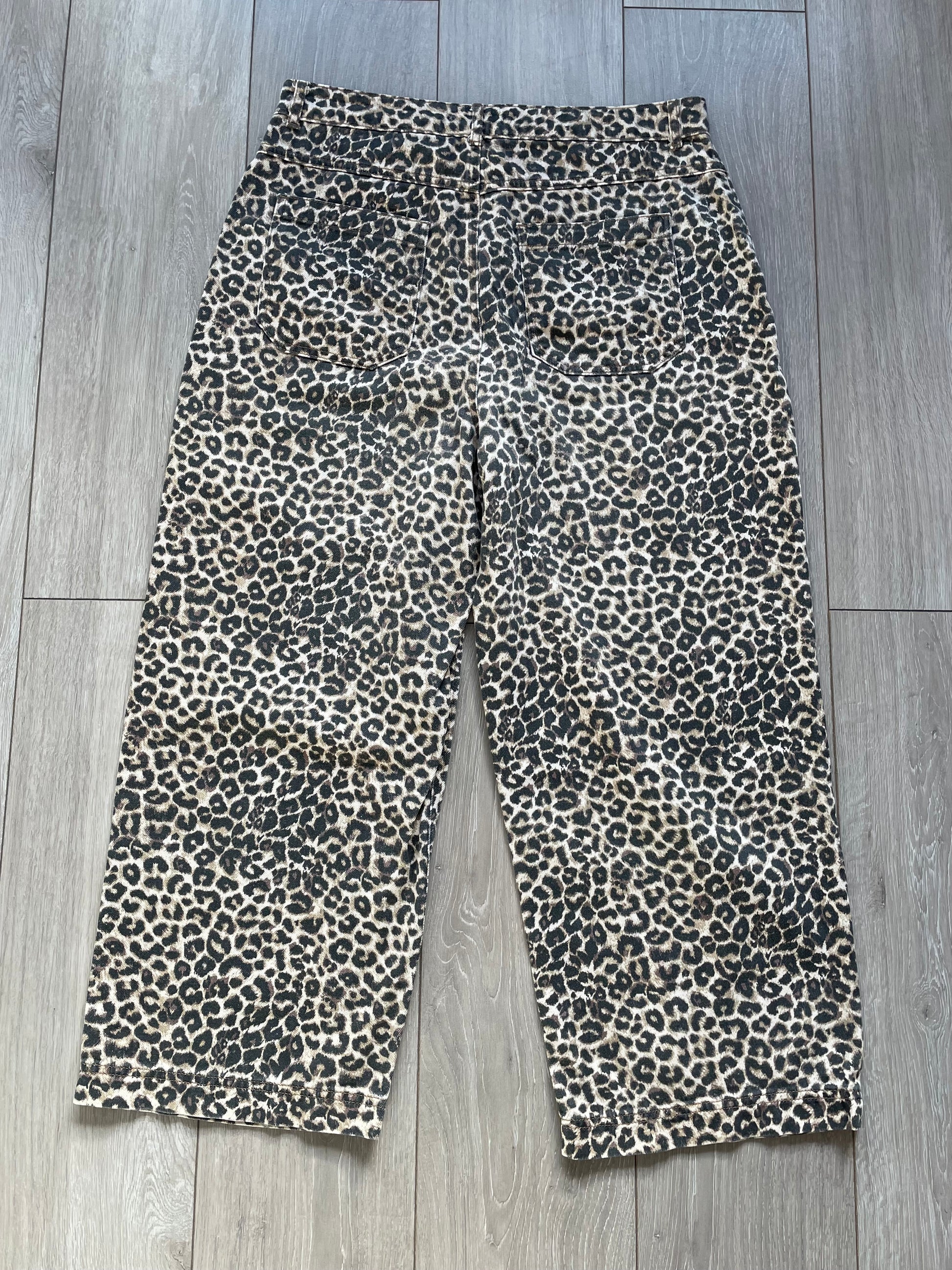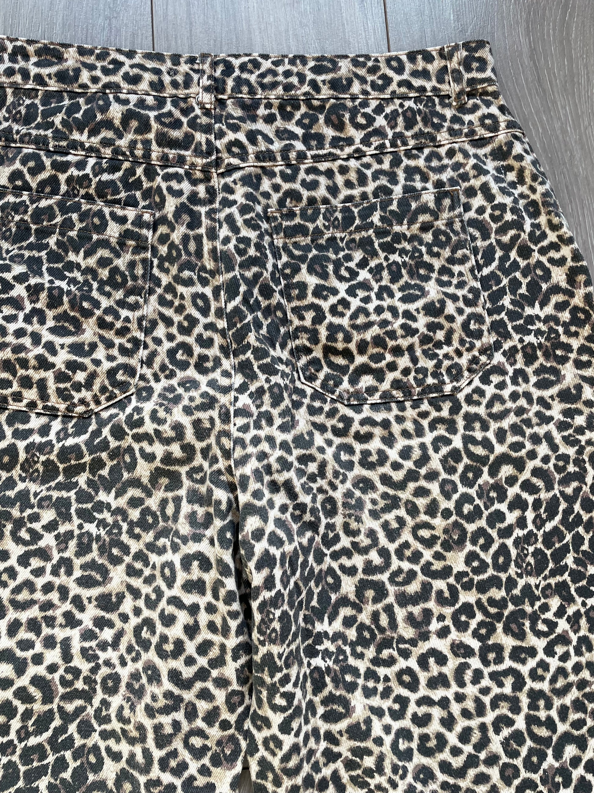 Brown Animal Print Scalloped Pocket Cropped Wide Leg Jeans