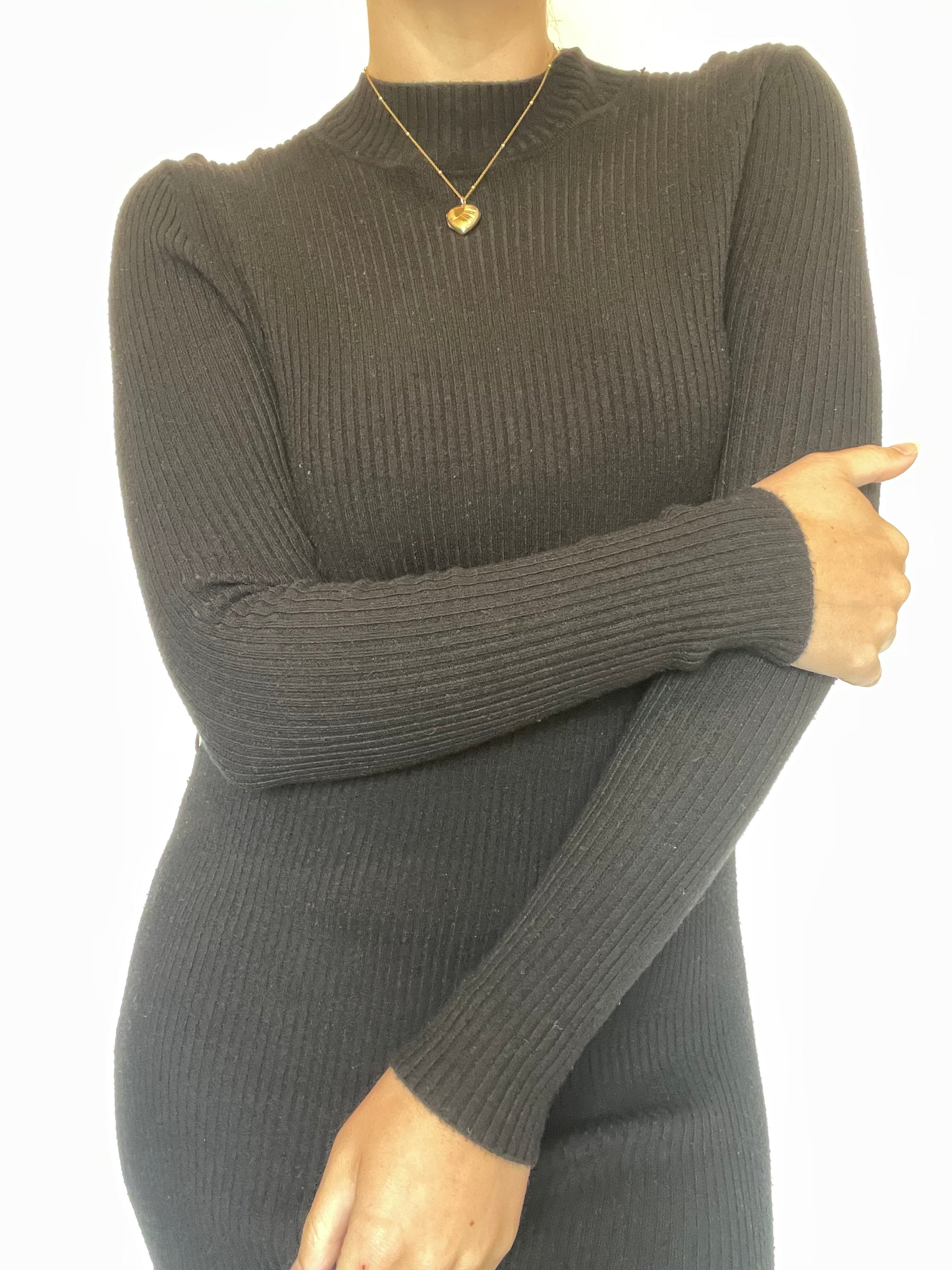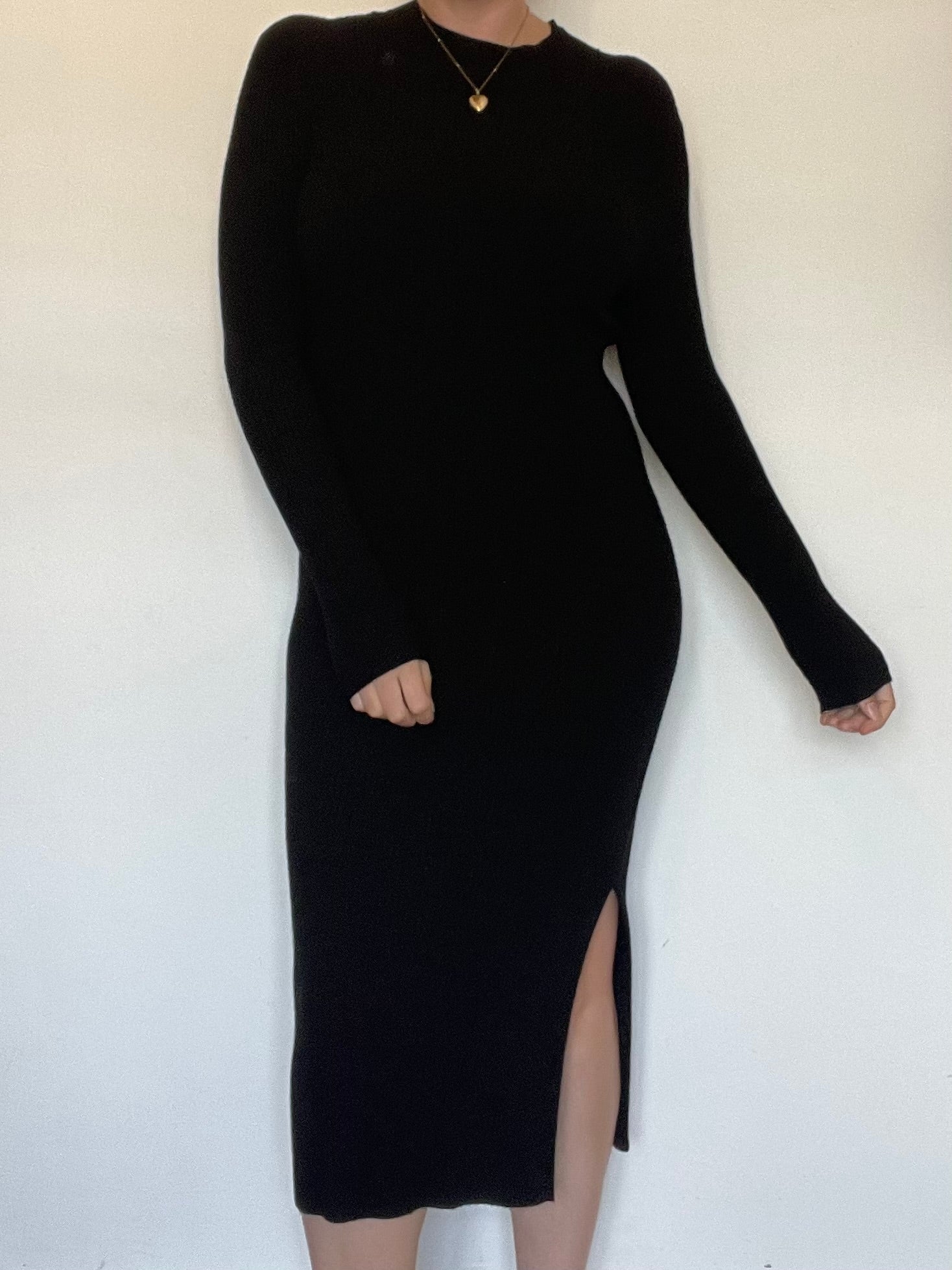 Black ribbed stretchy midi dress