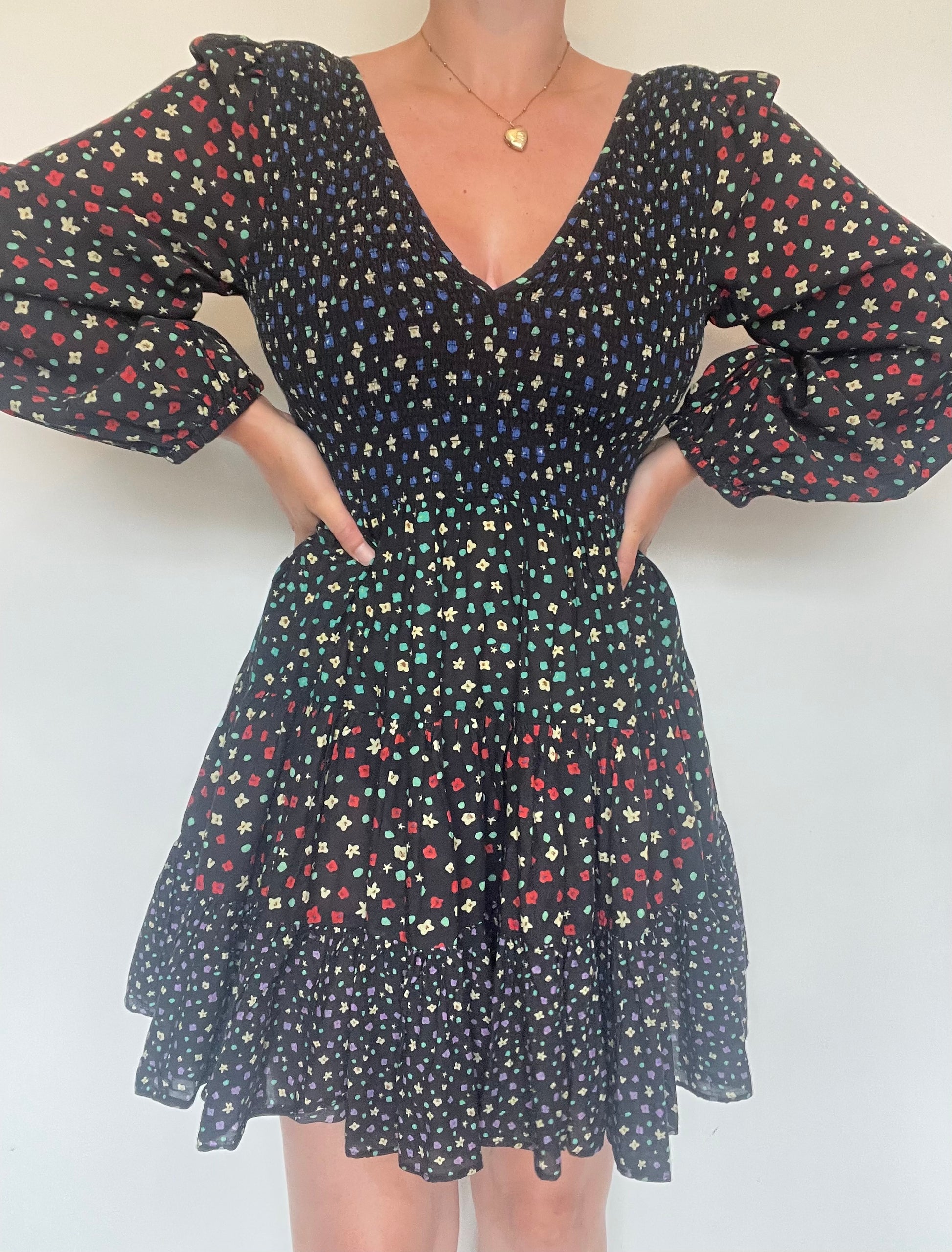 Rixo London Sasha Dress In Black with Mixed Ditsy Floral