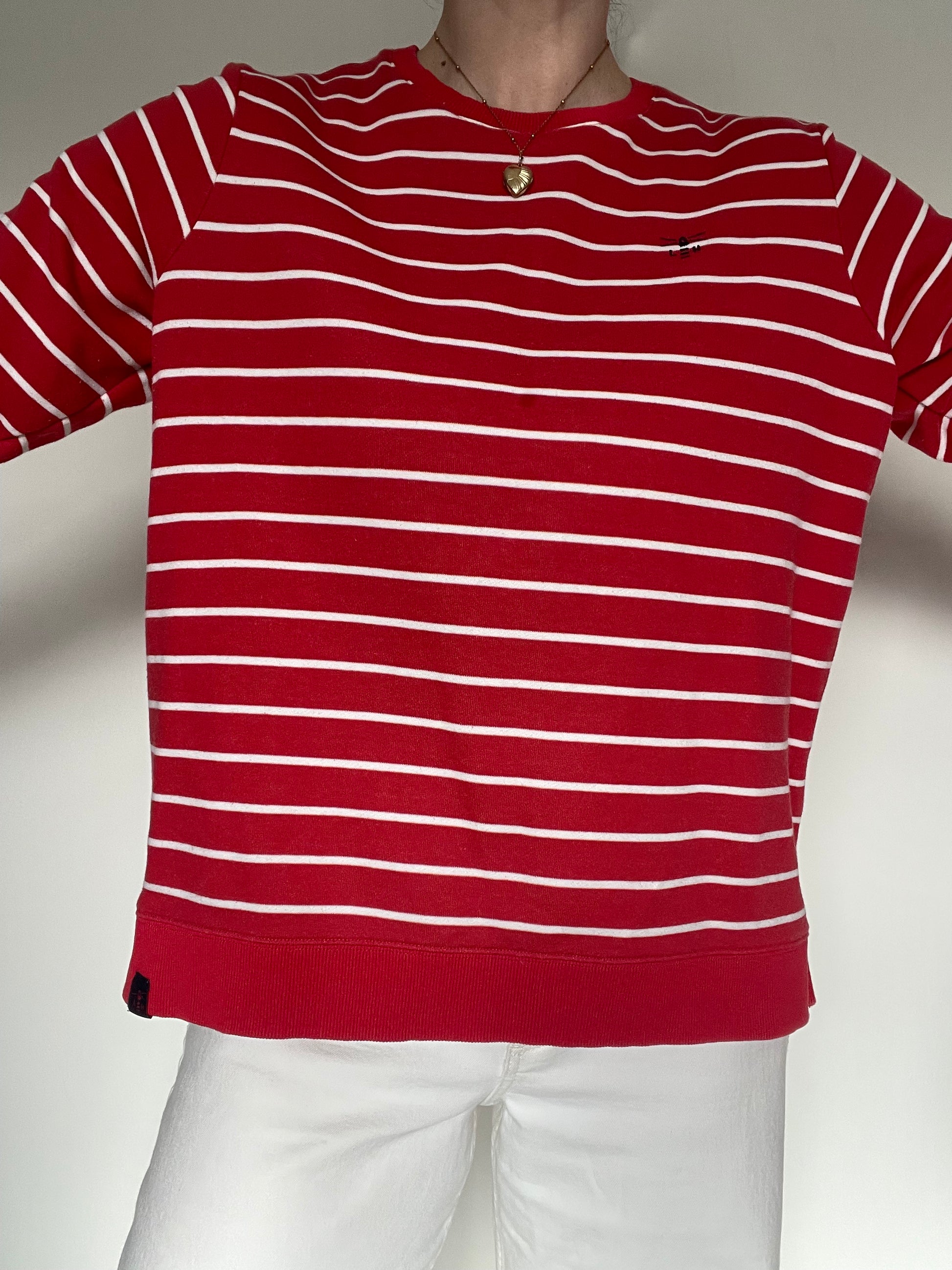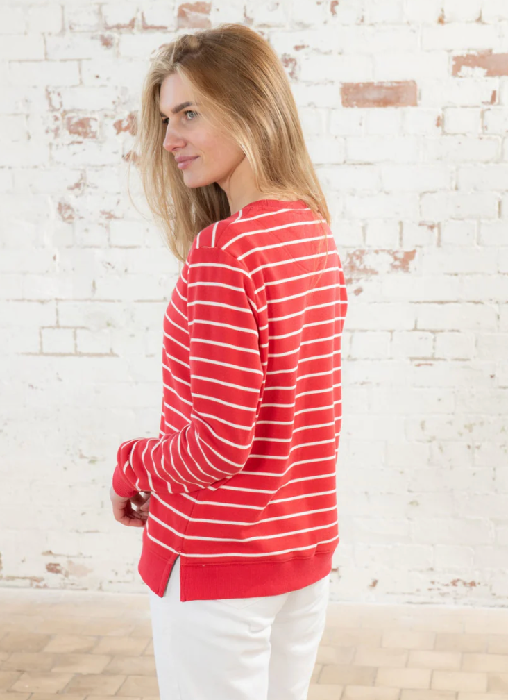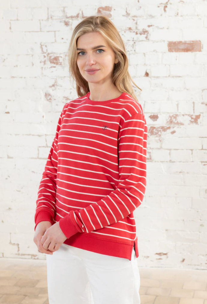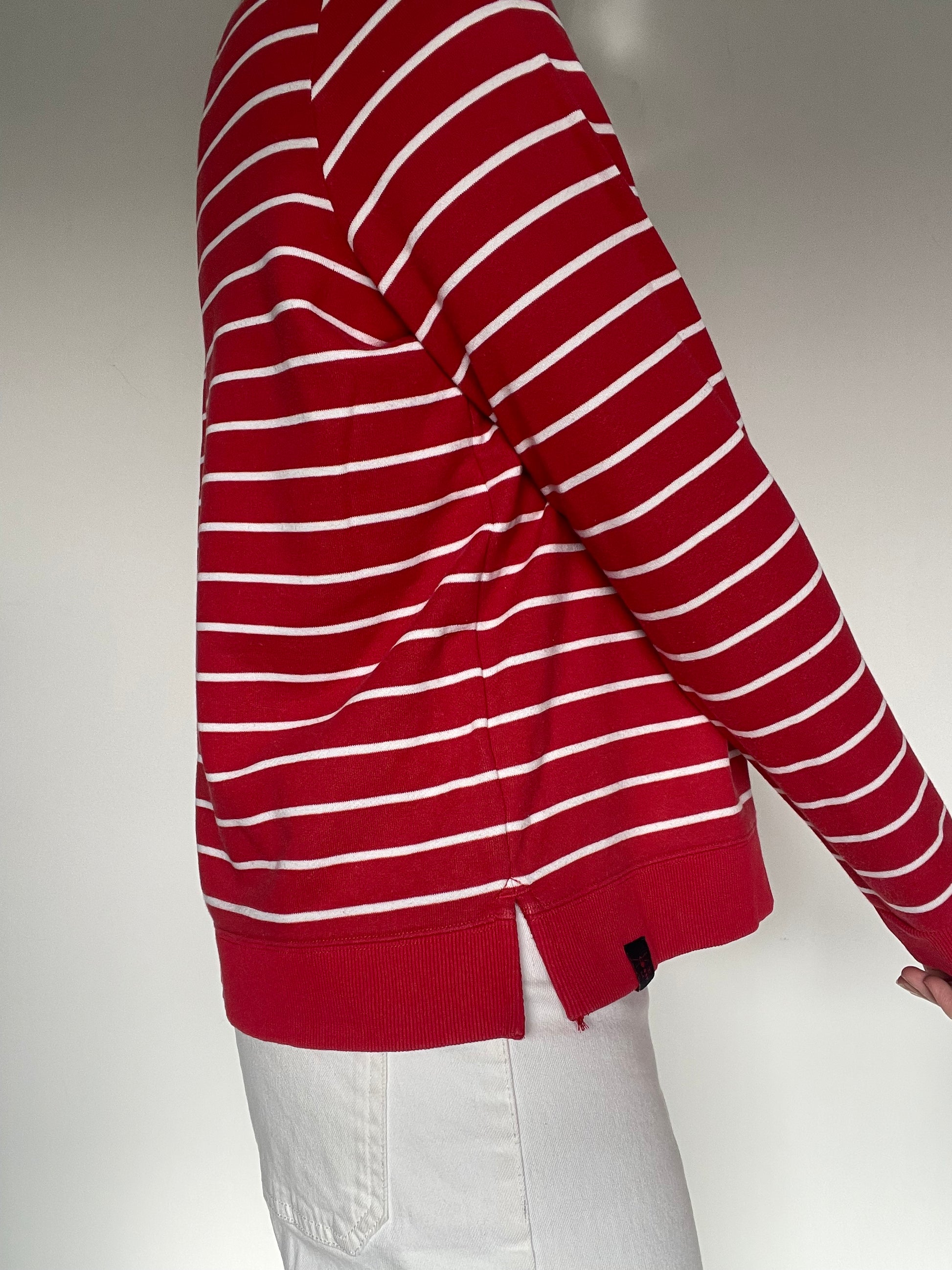 Red white poppy stripe sweatshirt