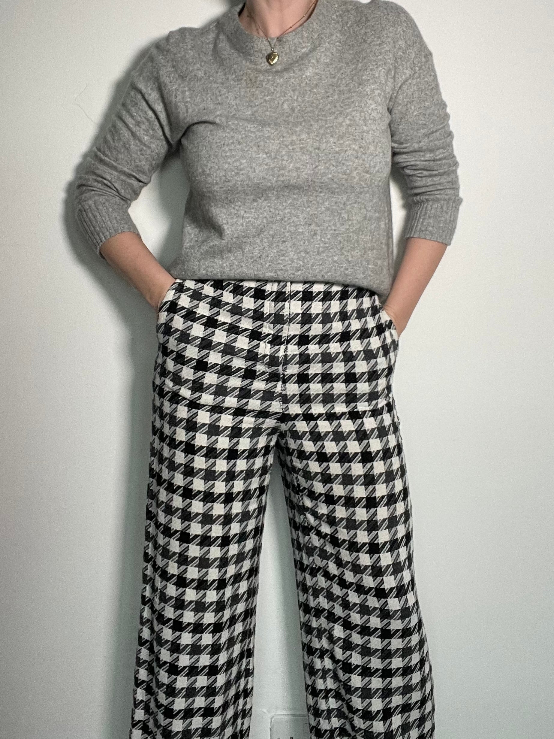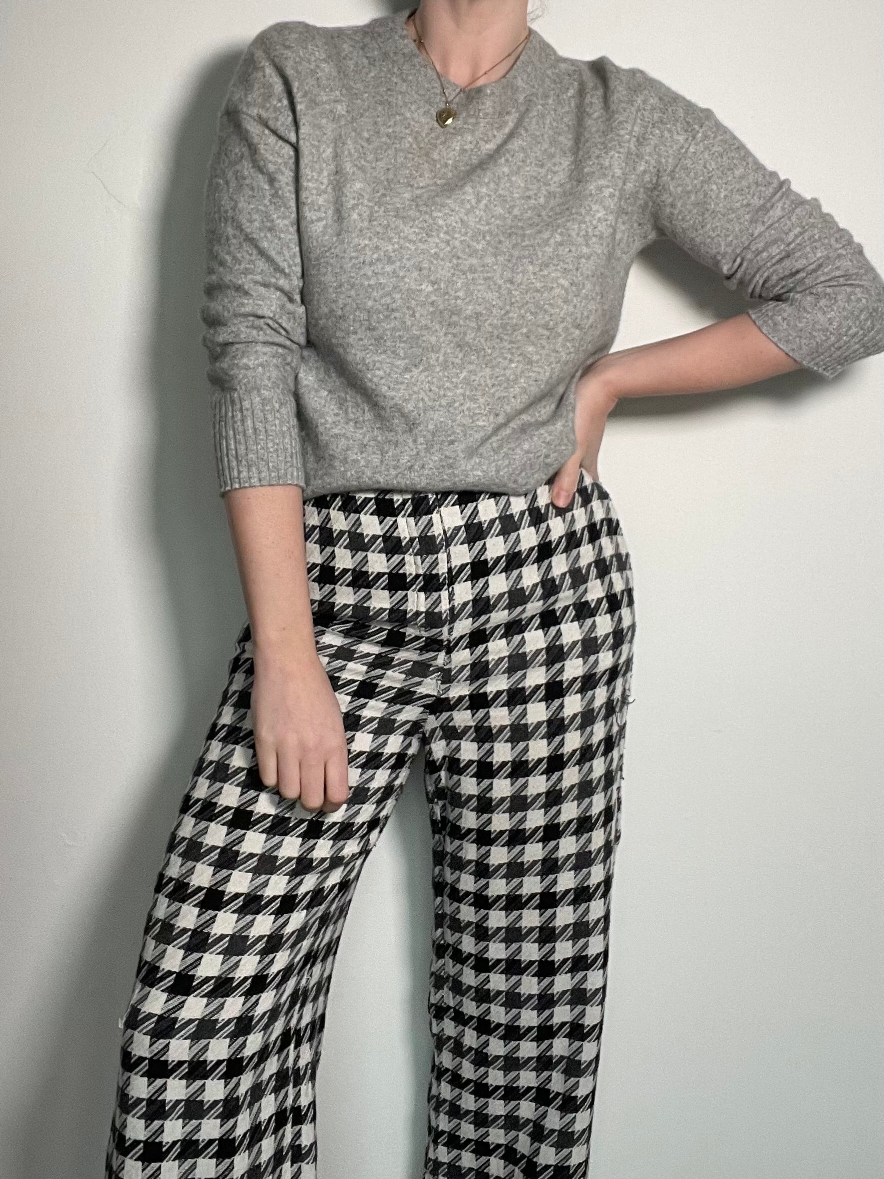 Black and white houndstooth trousers