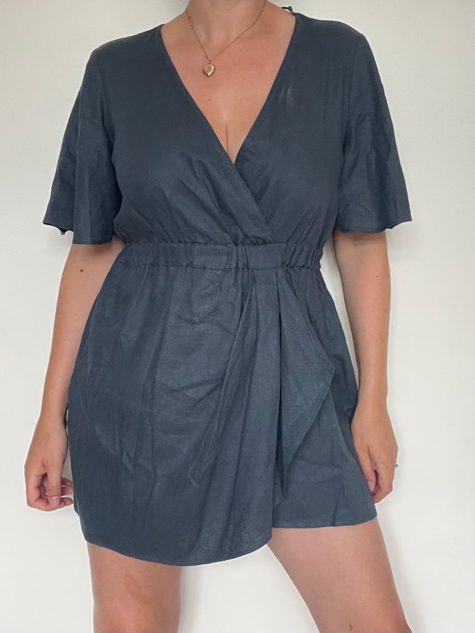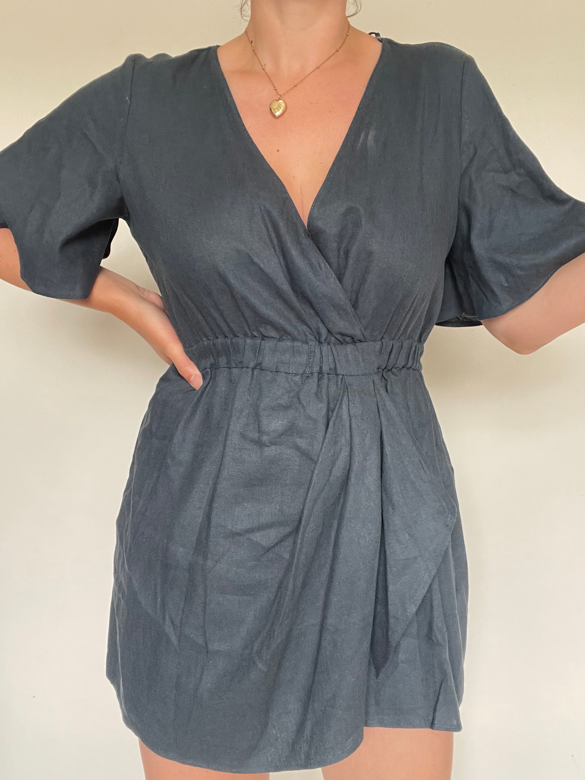 Navy blue linen blend playsuit