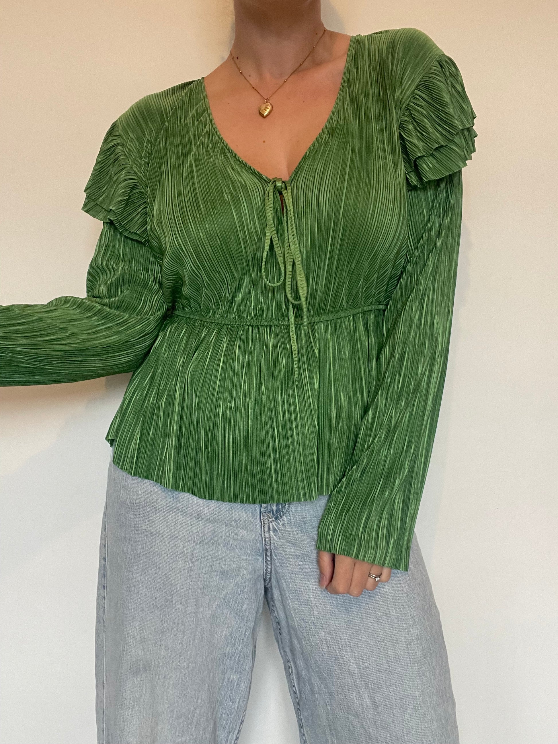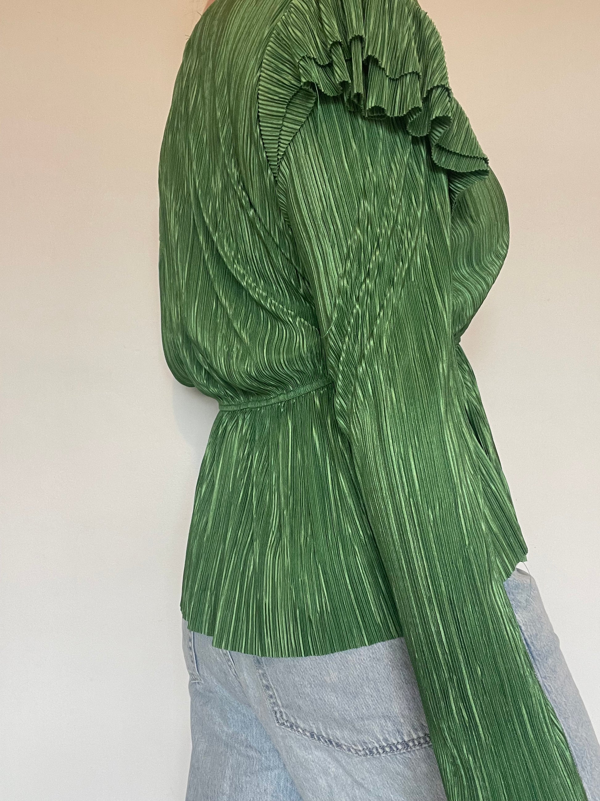 Green plisse top